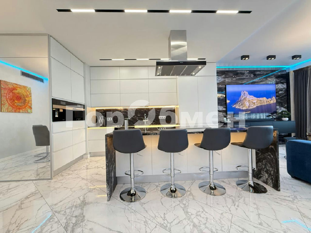ПРОСТОРНАЯ КУХНЯ-ГОСТИНАЯ 43 м2. Гостиная выполнена с зонированием пространства: домашний кинотеатр с удобными диванами, обеденная зона. КУХНЯ с СОВРЕМЕННЫМ ГАРНИТУРОМ и встроенной ЭЛИТНОЙ немецкой бытовой техники ПРЕМИУМ КЛАССА Miele: варочная панель, духовой шкаф, настенная вытяжка, кофе машина, посудомоечная машина, 2 холодильника, ВИННЫЙ ШКАФ - ДЛЯ ЦЕНИТЕЛЕЙ и многое другое. под раковиной установлен ИЗМЕЛЬЧИТЕЛЬ и хороший фильтр воды. Из ГОСТИНОЙ можно пройти МАСТЕР СПАЛЬНЮ 1 - 26 М2 С БОЛЬШОЙ ГАРДЕРОБНОЙ КОМНАТОЙ 20 м2 и санузлом 8 м2. В гардеробной комнате установлена СТИРАЛЬНАЯ И СУШИЛЬНАЯ МАШИНЫ тоже фирмы Miele! ГОСТЕВАЯ СПАЛЬНЯ 2 - 27 М2 имеет два панорамных окна с красивыми видами на Москву и вечерними закатами.